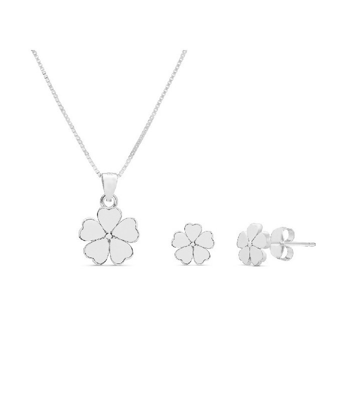 JUEGO PLATA PENDIENTES Y COLGANTE FLOR 5 PETALOS JU3048