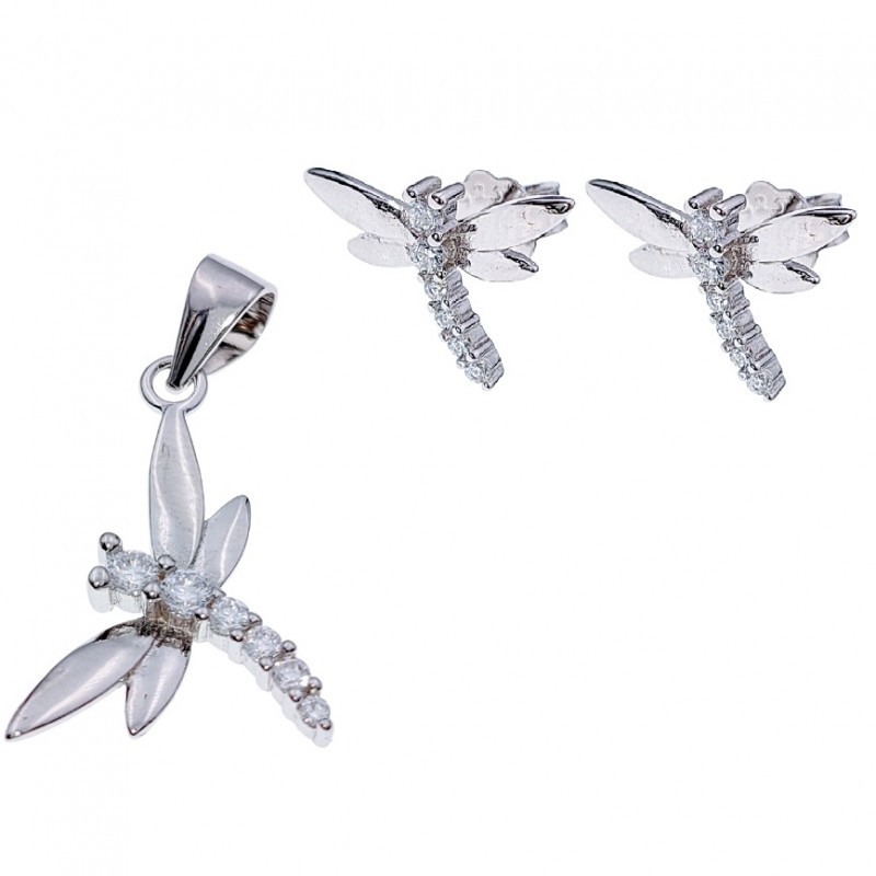 JUEGO PLATA PENDIENTES Y COLGANTE LIBELULA JU2864