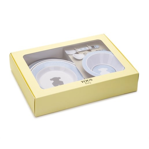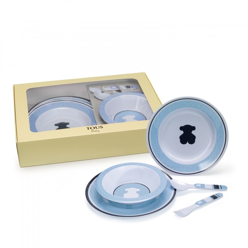Vajilla de bebé Baby TOUS 5 piezas compuesta por bol, plato hondo, plato llano y cubiertos. Ideal para el aprendizaje y facilitar la alimentación del bebé. Recomendado para mayores de 6 Meses.