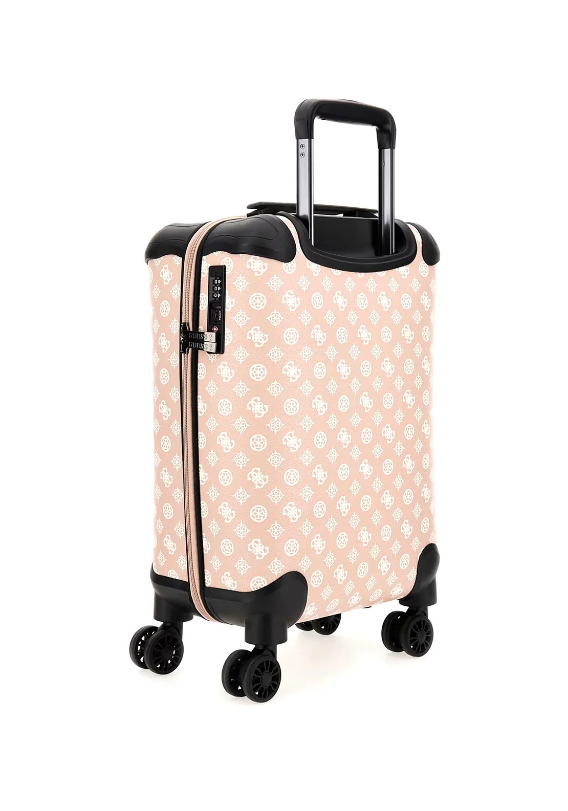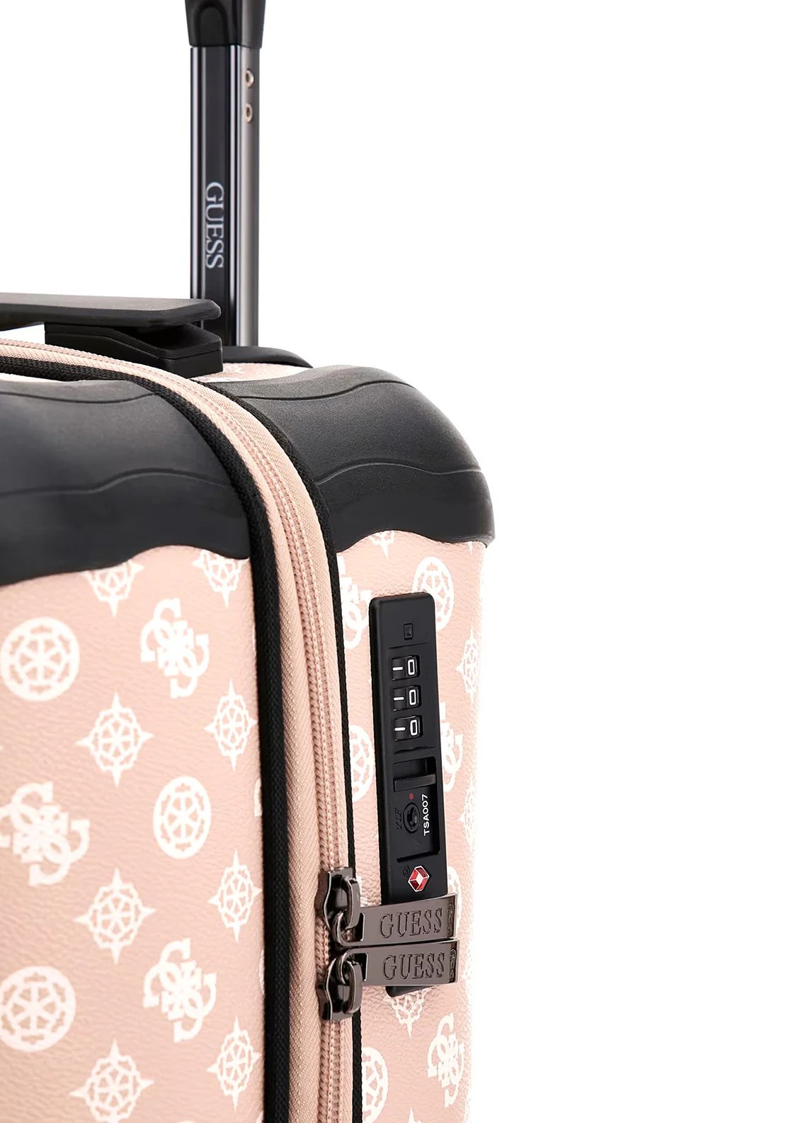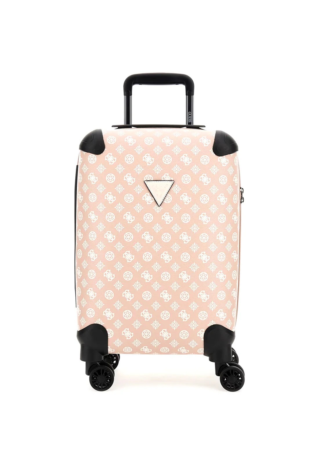 Con un estampado 4G y un logotipo de peonía, una cerradura de combinación, bolsillos internos con cierre, un forro con logotipo personalizado y un logotipo triangular en el frente, esta elegante maleta de material sintético con cierre de cremallera y herrajes negros cuenta con cuatro ruedas de flujo libre para una mejor movilidad.