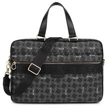 Maletín TOUS de la colección Logogram de vinilo efecto piel estampado en color negro. Cierre con cremallera. Correa de bandolera ajustable y desmontable, dos asas de mano. Un bolsillo exterior y otro interior, ambos con cremallera. Medidas: 10 x 34 x 25 cm.