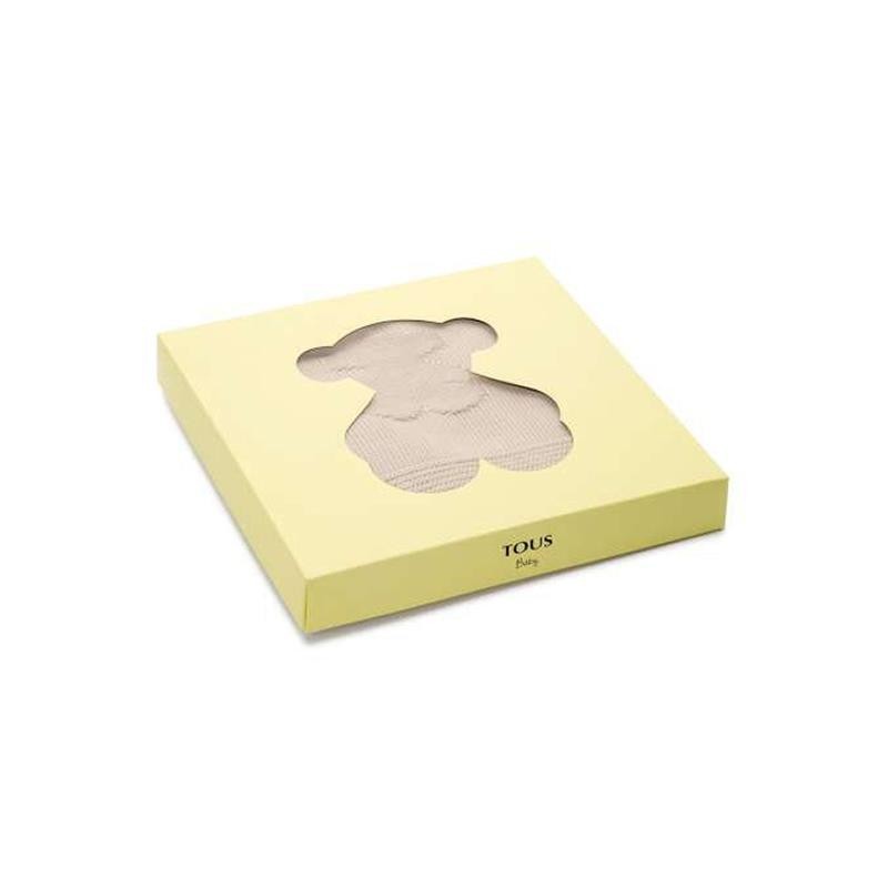 Manta TOUS Baby adornada con estrellitas y osos, fabricada con hilo de algodón en color beige de forma artesanal. Con tejido suave, será la mejor forma de arropar al bebé.