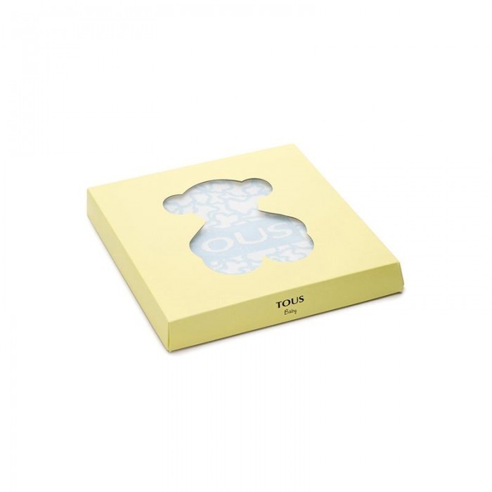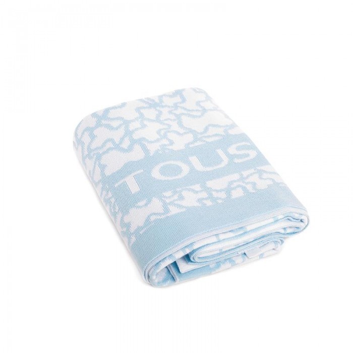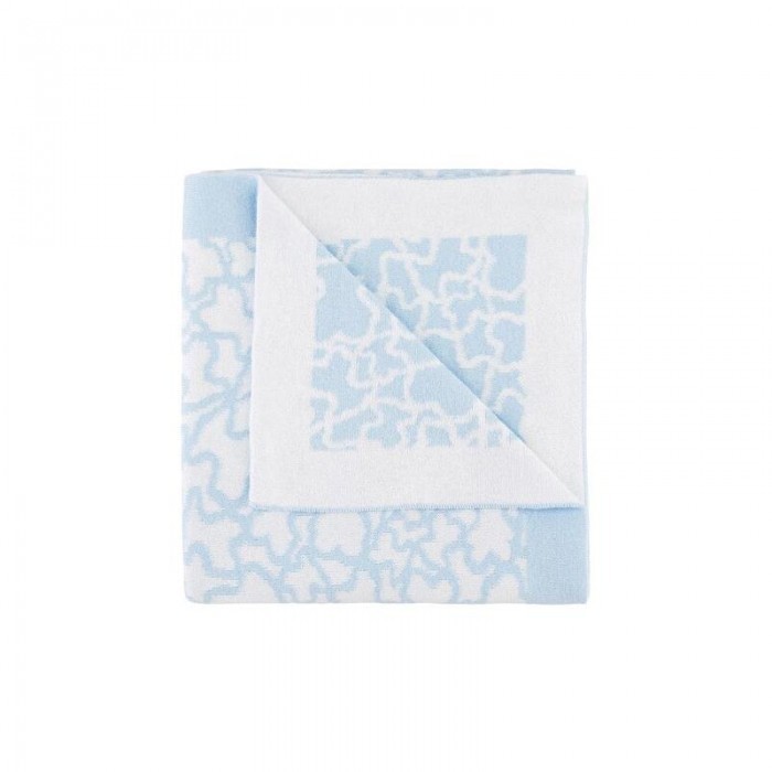 Manta Baby TOUS reversible, confeccionada en jaquard Kaos con hilatura de algodón para arropar al bebé en todo momento y lugar . COMPOSICIÓN: 100% algodón color celeste. MED: 108x90 cm. Certificado OEKO/TEX*. Fabricado en la EU.