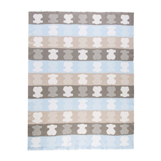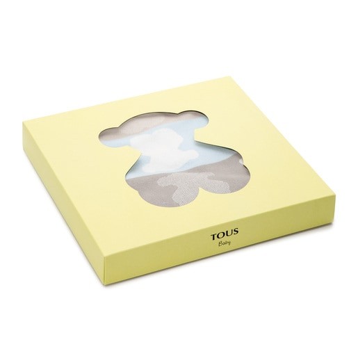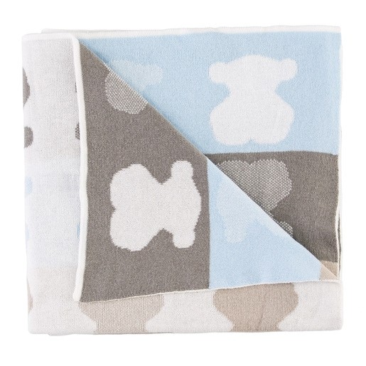 Manta Baby TOUS reversible, confeccionada con hilatura de algodón 100% orgánico y fabricada de forma artesanal formando multi ositos para arropar al bebé en todo momento y lugar. COMPOSICIÓN: 100% Algodón de color Azul Celeste. MED: 110x87cm. Certificado OEKO/TEX*. Fabricado en la EU.