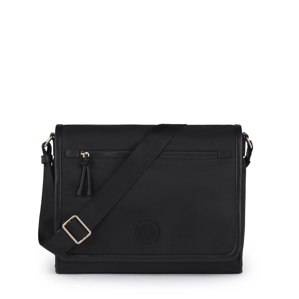 BOLSO GRANDE TOUS MESSENGER.DOROMY.NEGRO.095810208. De nylon. Cierre magnetico. Asa de bandolera ajustable. Dos bolsillos interiores planos y uno con cremallera . Un bolsillo exterior con cremallera. Medidas: 34x26x12 cm.
