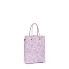 Mini bolso Pop TOUS Kaos Pix de lona con estampado en color malva. También incorpora detalles de piel sintética. Cierre con botón magnético. Asas fijas de mano y asa bandolera ajustable y extraíble. Medidas (alto x ancho x fondo): 21 x 16 x 6 cm.