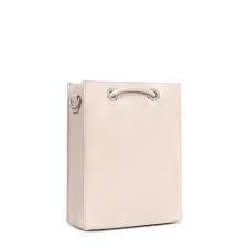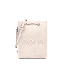 Mini bolsa bandolera TOUS de la colección Dorp, en vinilo de efecto piel y acabado charol con relieve TOUS en color blanco y negro. Cierre con cordón. Asa bandolera extraíble, ajustable. Bolsillo interior plano. Medidas: 20 x 16 x 6 cm.