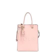 Mini Bolso bandolera TOUS de la colección Pop, de piel sintética con acabado safiano, relieve TOUS, en rosa. Cierre con botón magnetico. Asa de bandolera desmontable y ajustable, asas de mano. Bolsillo interior plano. Bolso cuenta con un detalle: oso