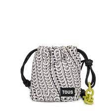 Mini bolsa TOUS Cloud Soft de poliéster reciclado en color blanco y negro. Cierre con cordón ajustable. Bolsillo interior abierto. Asa bandolera con detalle de nudos y anillas. Medidas (alto x ancho x fondo): 21 x 16 x 5 cm.