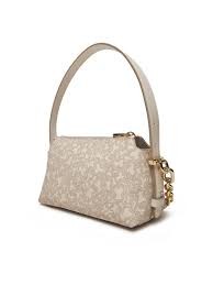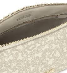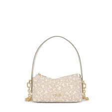 Minibolso Kaos Mini Lines de lona en color beige. Cierre de cremallera. Asa de hombro ajustable y asa bandolera desmontable. Medidas (alto x ancho x fondo): 11,5 x 21 x 9 cm.