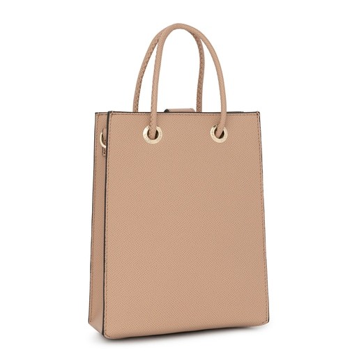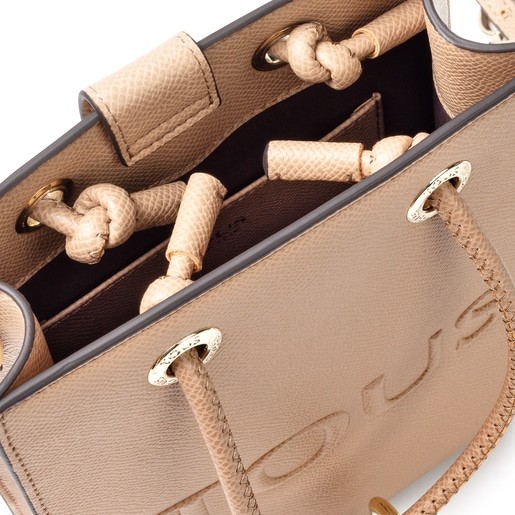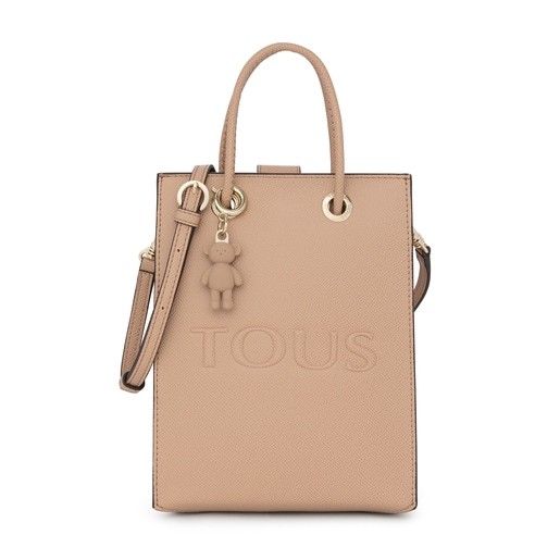 Mini Bolsa bandolera TOUS de la colección Pop, de poliuretano con acabado safiano, relieve TOUS, en topo. Cierre con botón magnetico. Asa de bandolera desmontable y ajustable, asas de mano. Bolsillo interior plano. Bolsa cuenta con un detalle: oso colgante. Medidas: 20 x 16 x 6 cm.