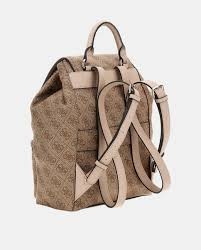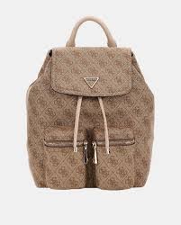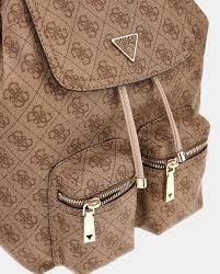 Mochila modelo Manhattan II con estampado logotipo 4g, solapa con cierre imantado, logotipo triángulo metálico central en tono dorado y dos compartimientos frontales con cierre imantado