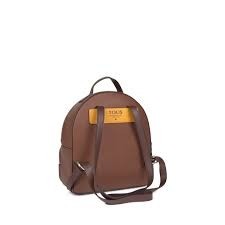 Mochila TOUS de la colección Essential de vinilo efecto safiano combinado con vinilo efecto piel en color marrón mostaza. Cierre con cremallera. Cierre con botón magnético. Un bolsillo exterior de cremallera y 3 bolsillos interiores, 2 de ellos planos y 1 de cremallera. Asa de mano y correas de hombro ajustables. Medidas: 25 x 28,5 x 12 cm.