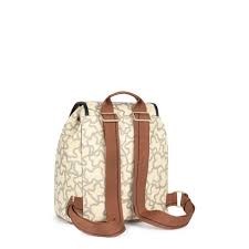 Mochila Kaos Icon de lona hidrofuga combinado con vinilo efecto piel, estampado kaos en multi beige. La mochila cuenta con asas de los hombros ajustables, cierre con solapa y cordon decorativo. Dentro hay un bolsillo con cremallera. Medidas: 17 x 28 x 30,5cm.