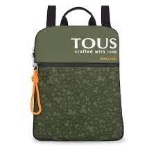 Mochila plana TOUS Kaos Mini Evolution en color caqui de nylon reciclado combinado con detalles de piel sintética. Tiene un espacioso compartimento principal y un bolsillo frontal con cierre de cremallera. En el interior hay un bolsillo con cremallera, dos bolsillos abiertos y un portabolígrafo. Mochila con correas de hombro ajustables para una mayor comodidad y asa superior para colgar. Medidas (alto x ancho x fondo): 40 x 32 x 14,5 cm.