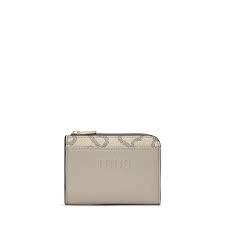 Monedero tarjetero Kaos Icon en color topo. Compartimento especial para monedas con cierre de cremallera. En la parte trasera cuenta con tres ranuras para tarjetas. Medidas (alto x ancho x fondo): 9 x 11,5 x 2,5 cm.