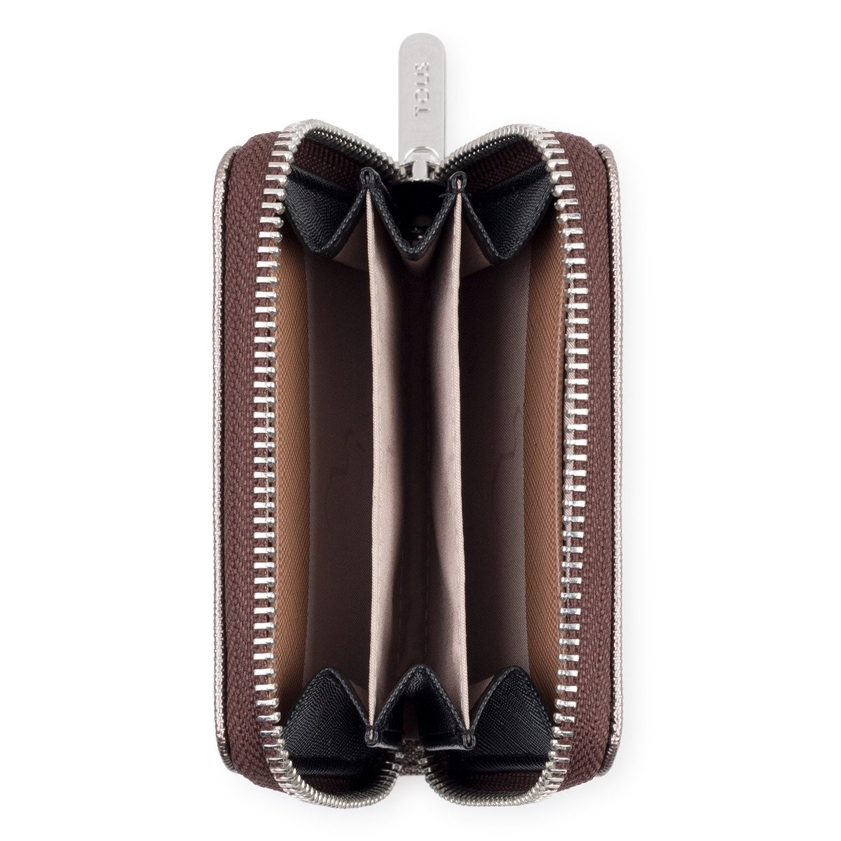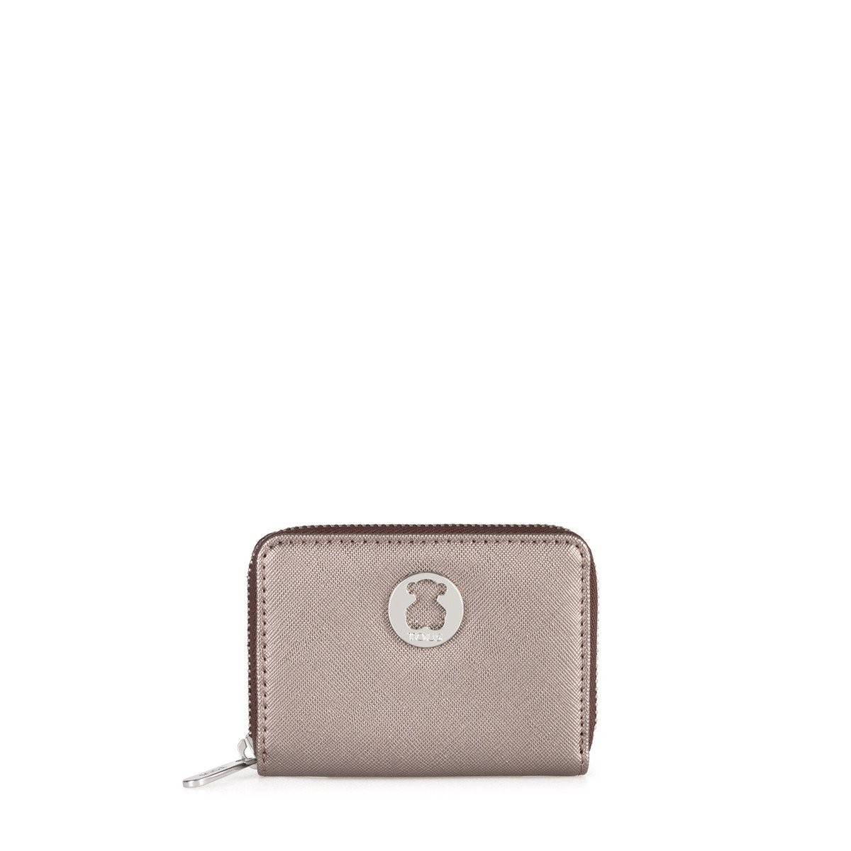 MONEDERO TOUS.M.DUBAI.SAFIANO.BRONCE-TOPO.695930007 de vinilo hidrófugo. Color bronce-topo. Cierre cremallera. Medidas: 8x10x2,5 cm.