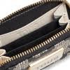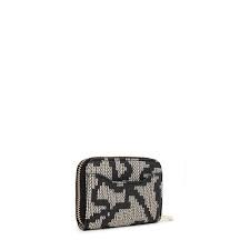 Monedero TOUS Kaos Pix de lona con estampado en color negro y beige. También incorpora detalles de piel sintética. Cierre de cremallera y ranura en la parte trasera para llevar una tarjeta. En el interior cuenta con tres compartimentos abiertos para monedas y dos ranuras para tarjetas. Medidas (alto x ancho x fondo): 8 x 10,5 x 2,5 cm.