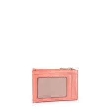 Monedero y tarjetero TOUS Dorp de vinilo efecto charol en color rosa. Tres departamentos para tarjetas y un departamento con cremallera. Medidas: 8x11,5x1 cm.