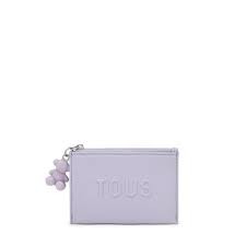 Monedero tarjetero TOUS Brenda de poliuretano en color malva. Compartimento especial para monedas con cierre de cremallera. En la parte trasera cuenta con tres ranuras para tarjetas, una de ellas transparente. Medidas (alto x ancho x fondo): 8,5 x 11,5 x 1 cm.