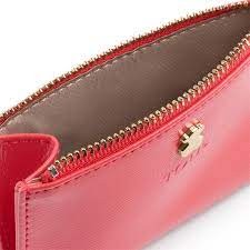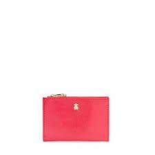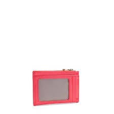 Monedero y tarjetero TOUS colección Dorp de vinilo efecto piel con acabado charol en color coral. Cierre con cremallera. Apliques personalizados en tono dorado pálido. Tres compartimentos exteriores para tarjetas. Medidas: 8x12x1 cm.