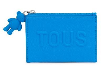 Tarjetero TOUS La Rue de piel sintética en color azul. Cuenta con tres ranuras para tarjetas y un bolsillo con cremallera para monedas. Incorpora un osito en el tirador. Medidas (alto x ancho x fondo): 8 x 11,5 x 1,5 cm.