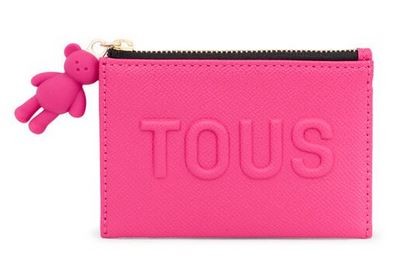 Tarjetero TOUS La Rue de piel sintética en color fucsia. Cuenta con tres ranuras para tarjetas y un bolsillo con cremallera para monedas. Incorpora un osito en el tirador. Medidas (alto x ancho x fondo): 8 x 11,5 x 1,5 cm.