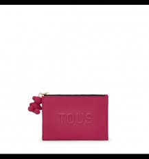 Monedero tarjetero TOUS La Rue New de poliuretano en color fucsia. Compartimento especial para monedas con cierre de cremallera. En la parte trasera cuenta con tres ranuras para tarjetas, una de ellas transparente. Medidas (alto x ancho x fondo): 8,5 x 11,7 x 1,5 cm.