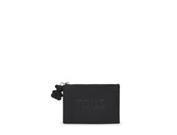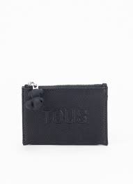 Monedero tarjetero TOUS La Rue New de poliuretano en color negro. Compartimento especial para monedas con cierre de cremallera. En la parte trasera cuenta con tres ranuras para tarjetas, una de ellas transparente. Medidas (alto x ancho x fondo): 8,5 x 11,7 x 1,5 cm.