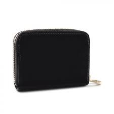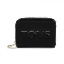 Monedero mediano TOUS de la colección Dorp, en vinilo de efecto piel y acabado charol con relieve TOUS en color negro. Cierre con cremallera. Cuenta con tres compartimentos y dos bolsillos planos. Medidas: 8 x 11 x 3 cm.