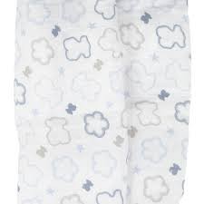 Muselina Baby TOUS de tejido transpirable antialergénico en estampado Osos y Flores. Se utiliza para arrullar al bebé o protegerlo de los rayos de sol en el cochecito. COMPOSICIÓN: 100% Algodón de color Azul celeste. MED: 118x98cm. Certificado OEKO/TEX*. Fabricado en la UE.