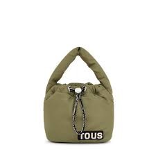 Neceser bombonera TOUS Carol Soft de poliéster reciclado en color caqui. Cierre con cordón ajustable y asa fija de mano. Medidas (alto x ancho x fondo): 22,5 x 18,5 x 12,5 cm.