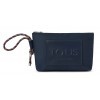 Neceser grande TOUS de la colección Empire Soft Chain de nylon reciclado en color azul marino. Cierre con cremallera, muñequera de cordón. El neceser cuenta con 2 bolsillos planos, exterior e interior. Medidas: 8 x 26 x 16 cm.