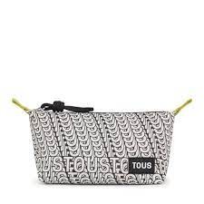 Neceser TOUS Cloud Soft de poliéster reciclado en color blanco y negro. Cierre de cremallera. Medidas (alto x ancho x fondo): 15 x 30 x 13 cm.