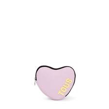 Neceser TOUS Carol en forma de corazón, elaborado con piel sintética y de color malva. Cierre de cremallera. Medidas (alto x ancho x fondo): 13 x 14,5 x 2 cm.
