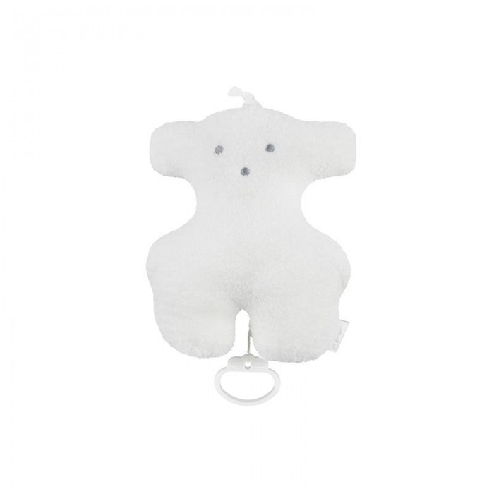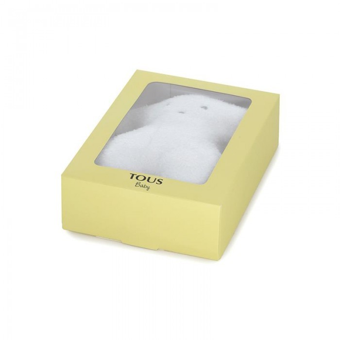 Osito TOUS Baby musical fabricado en tejido de pelo suave y cálido rizado, con ojos y nariz bordados. Consta de un asa en su parte inferior para activar la música, sin necesidad de pilas.