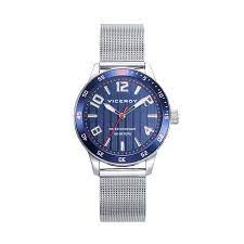 Reloj Viceroy para niño de la colección Next fabricado en acero inoxidable plateado y azul. Se trata de un reloj elegante y atractivo compuesto por caja azul de 36mm de diámetro con esfera azul que contiene índices y agujas luminiscentes movidas por mecanismo de cuarzo analógico protegido por cristal mineral. Su correa es de malla milanesa con cierre deslizante. Resistente al agua hasta 30 metros. Incluye pulsera de actividad