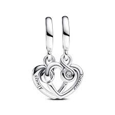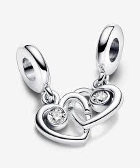 Charm Colgante Divisible Pandora Para Siempre para mujer de la colección Día de la Madre 2024 fabricado en plata de primera ley compuesto por 2 corazones colgantes divisibles cada uno con uan circonita blanca en talla brillante.