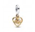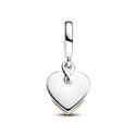 Charm Colgante Pandora Corazón Grabable Mamá y Diamante Sintético para mujer de la colección Día de la Madre 2024 fabricado en plata de primera ley y recubrimiento en oro amarillo de 14Kt compuesto por un doble corazón, uno de ellos compuesto por un diamante sintético creado en laboratorio.