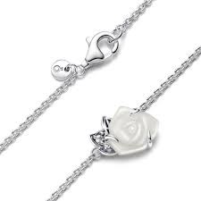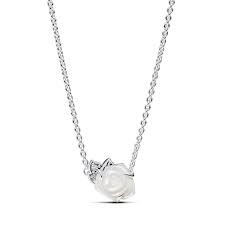 Gargantilla Pandora Rosa Blanca Floreciendo para mujer de la colección Día de la Madre 2024 fabricada en plata de primera ley compuesta por una elegante cadena que da lugar a un colgante en forma de Rosa Blanca Floreciendo. Su cierre es de mosquetón.