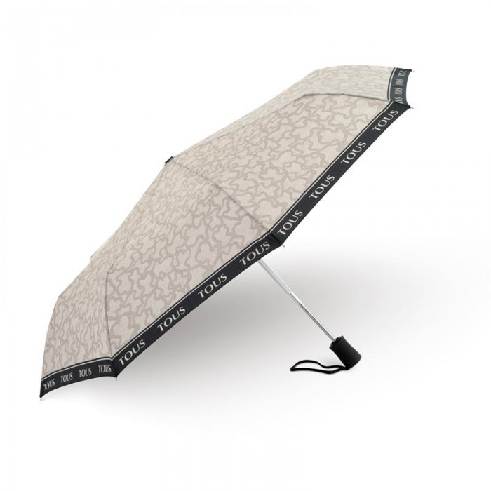 Paraguas plegable TOUS Kaos New de nylon hidrófugo. Color piedra. Plegable.