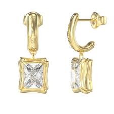 PENDIENTE GUESS BAMBOO ACERO DORADO Y CRISTAL