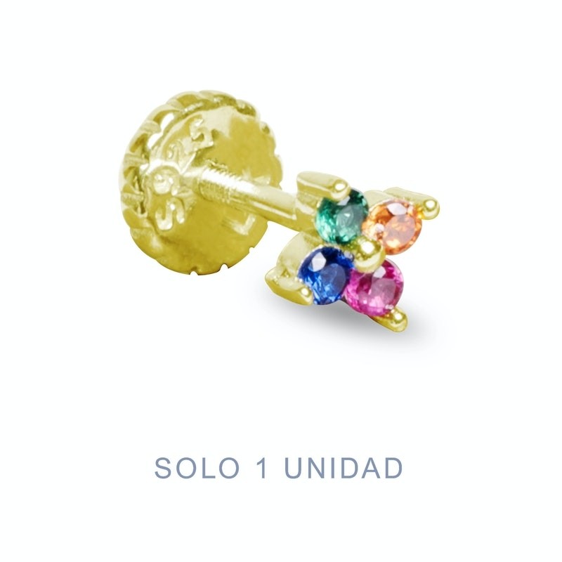 PENDIENTES TYULU EN PLATA CHAPADA COLOR DORADO Piedrass: 25 Acabado BAÑO DE ORO AMARILLO DE 18 QUILATES Peso: 0.00 gr. Cierre: ROSCA