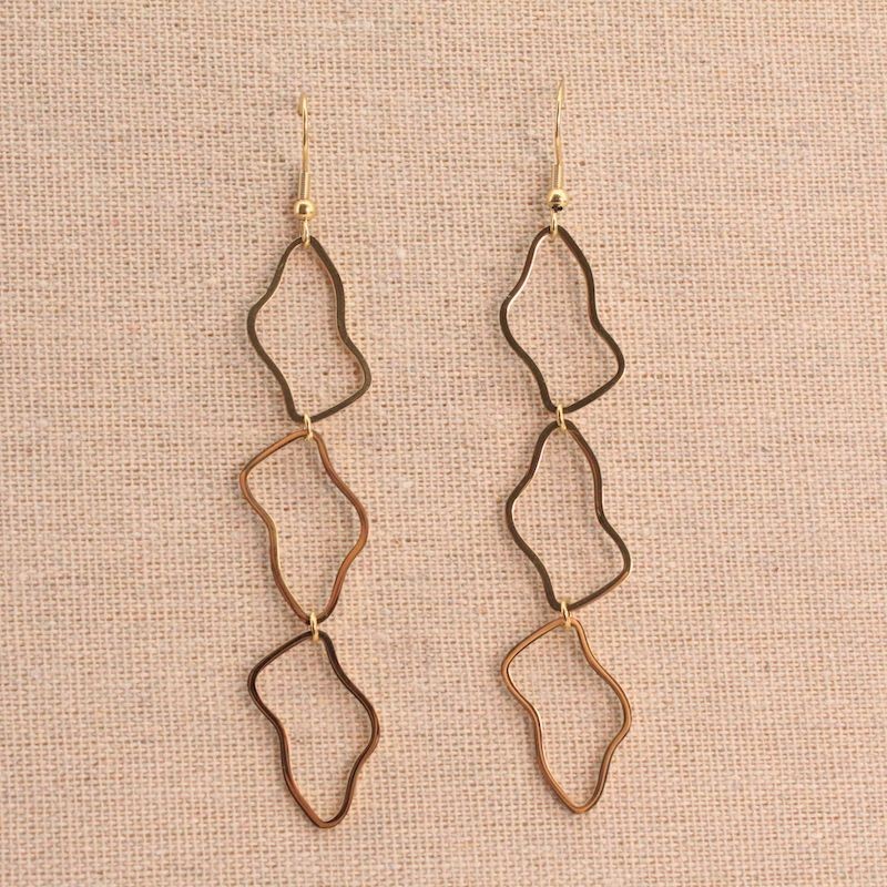 PENDIENTES ACERO DORADO LARGOS AROS IRREGULARES 131206-09