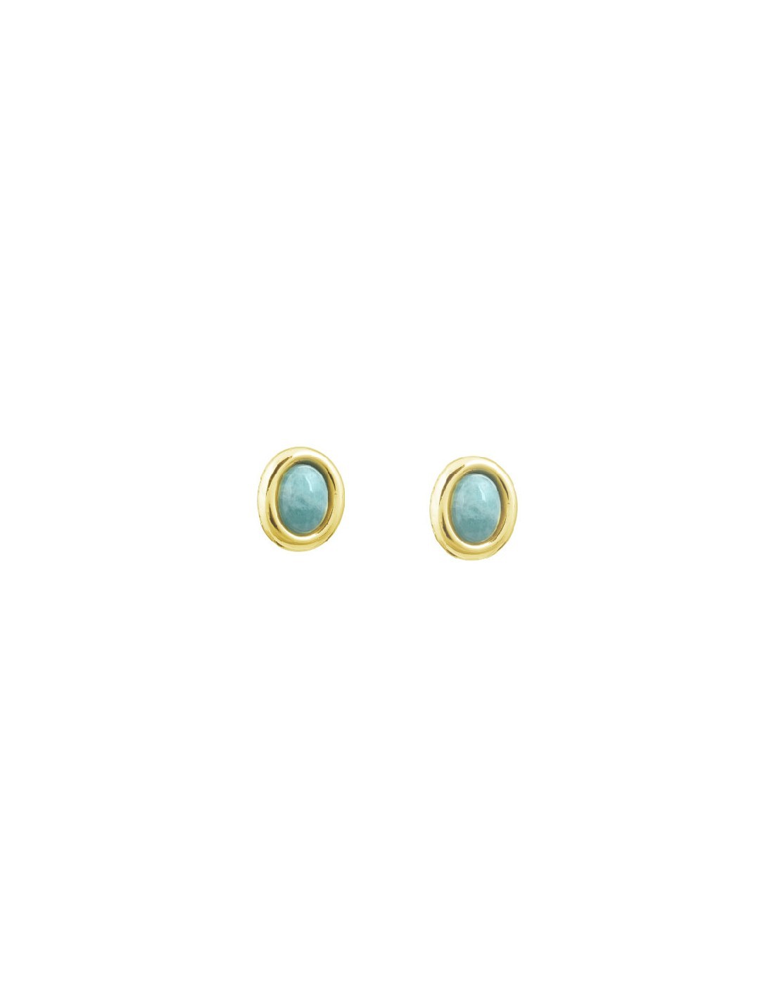 Pendientes Ventura mini bañado en oro con piedra Amazonita en color verde. Miden 11 mm. Cierre a presión.