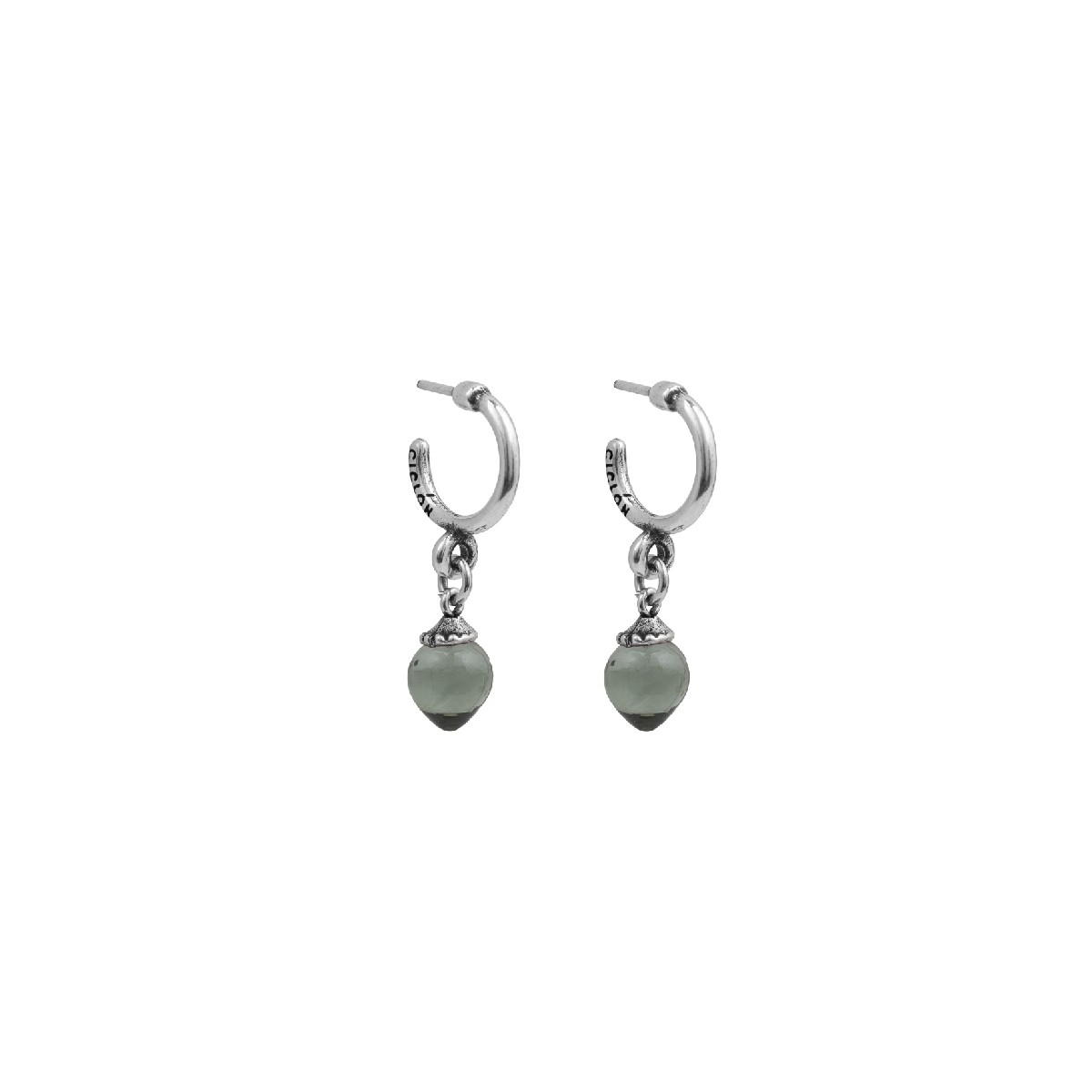 Pendientes Azahara con aro de la colección Alhambra con gota colgante de murano en color. Fabricados en metal hipoalergénico bañado en plata. Cierre a presión.