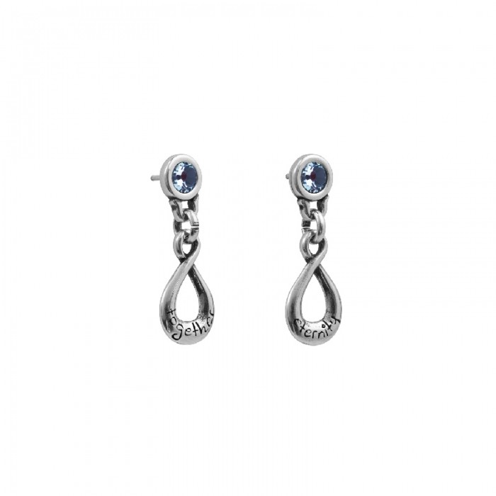 Pendientes Juntos con cristal checo y motivo de infinito de la colección Fleterna. Llevan una inscripción en ambas caras "Eternity - Together".