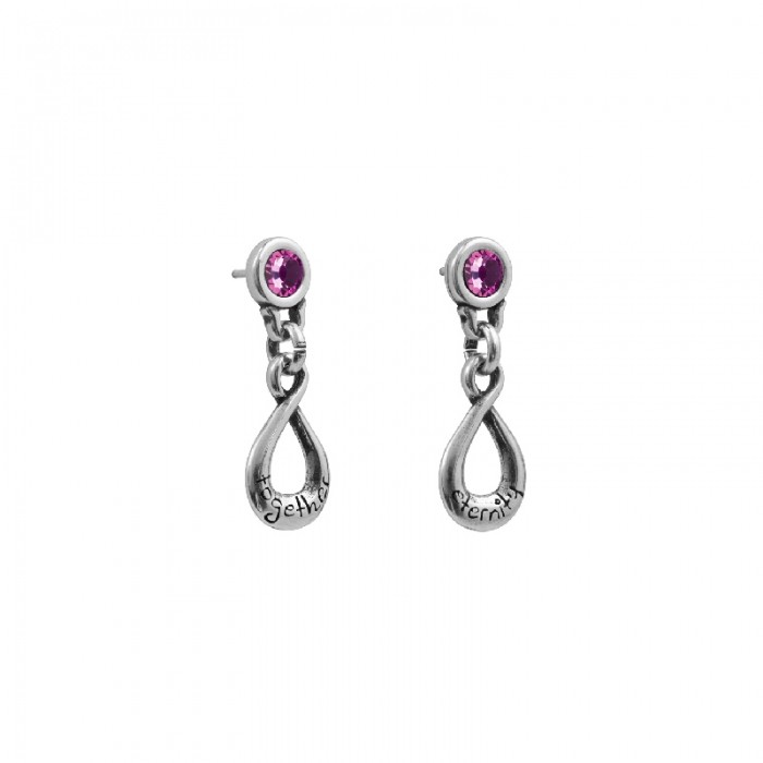 Pendientes Juntos con cristal checo y motivo de infinito de la colección Fleterna. Llevan una inscripción en ambas caras "Eternity - Together".