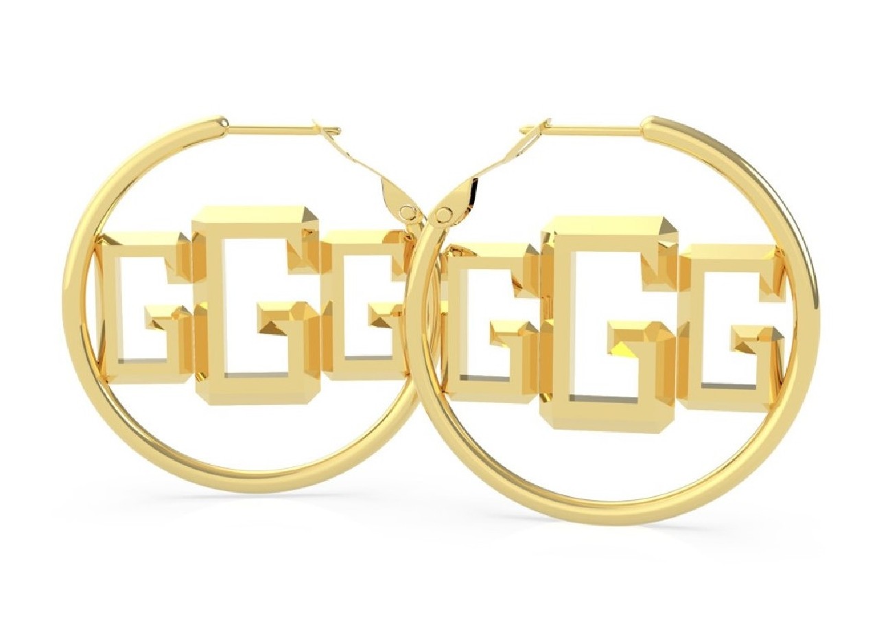 PENDIENTES GUESS ICONIC GLAM EN ACERO DORADO AROS LETRA "G"