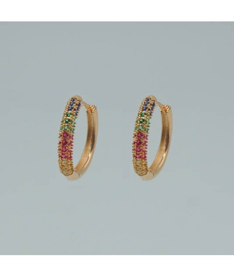 PENDIENTES IVOIRE DE AROS EN METAL DORADO CON PIEDRAS COLORES